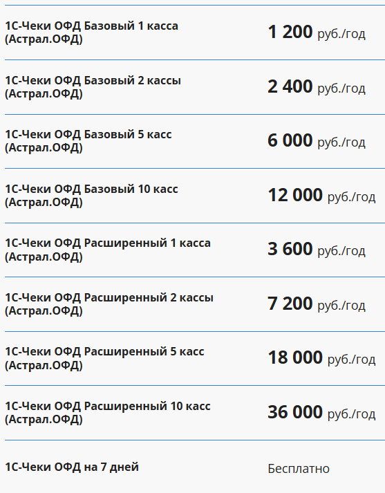 «1С-Чеки ОФД Базовый» включает возможности: