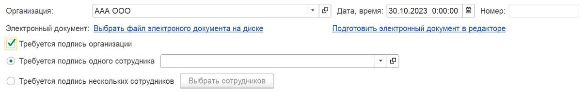 Существует возможность загрузить pdf файл (файлы только формата PDF/A-1A) и отправить его сотруднику или сотрудникам на подпись.