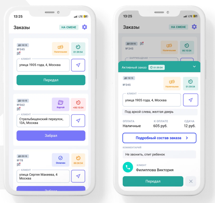 «1С-Курьерика» состоит из веб-интерфейса логиста и мобильного приложения для курьера.