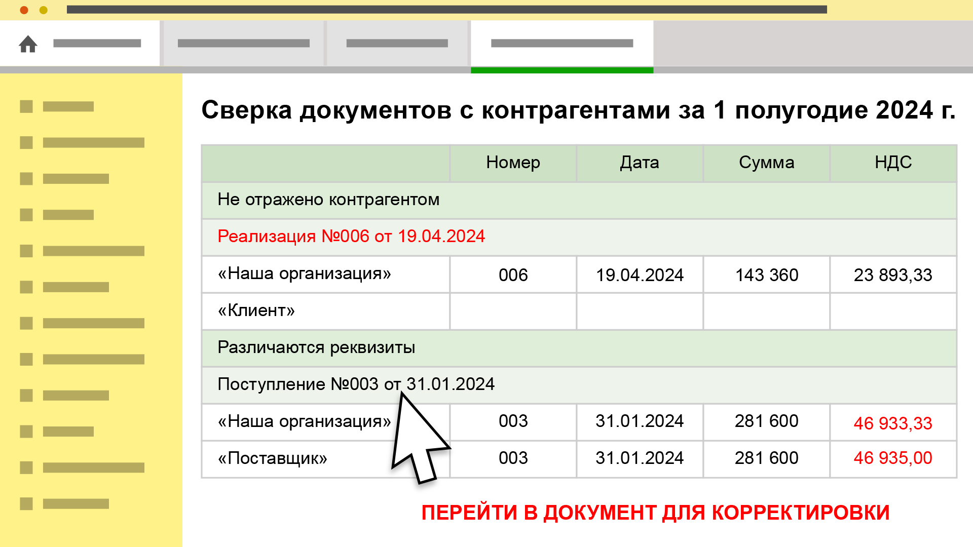 - проводить сверку и вносить корректировки можно в любой момент, не дожидаясь окончания периода (месяца или квартала), что позволяет исправлять ошибки без спешки и в удобном режиме;